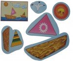 Взрослый вырезает все детали аппликации, а ребенок складывает из них изображения на листе и наклеивает их.