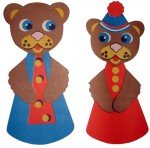 Сегодня мы продолжаем делать игрушки из бумаги. Прошлый раз мы предлагали вам сделать матрешки из бумаги. Сегодня из конусов попробуйте сделать медвежонка. По выкройкам вырежьте детали. Ребенок может украсить мишек по своему усмотрению.